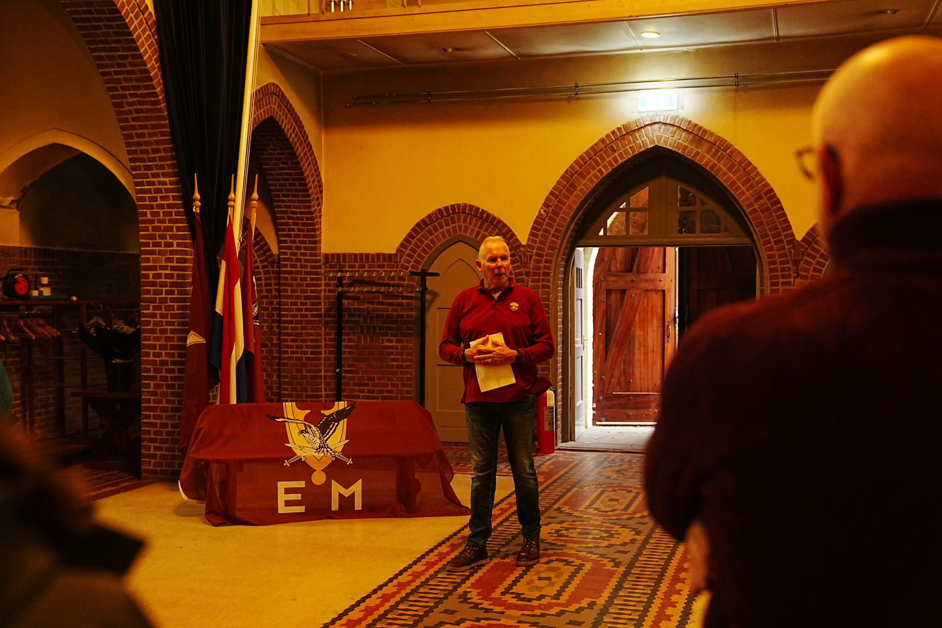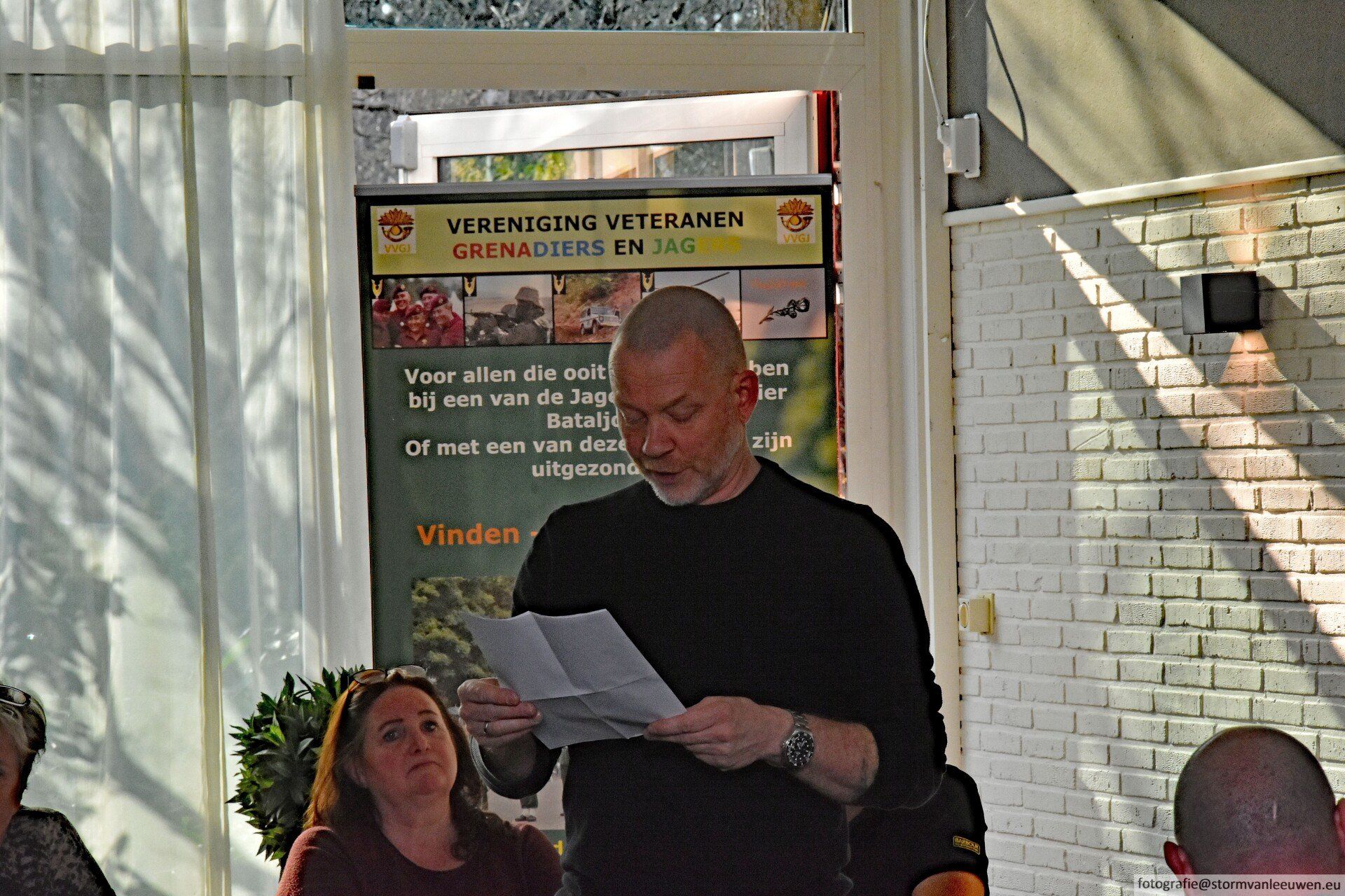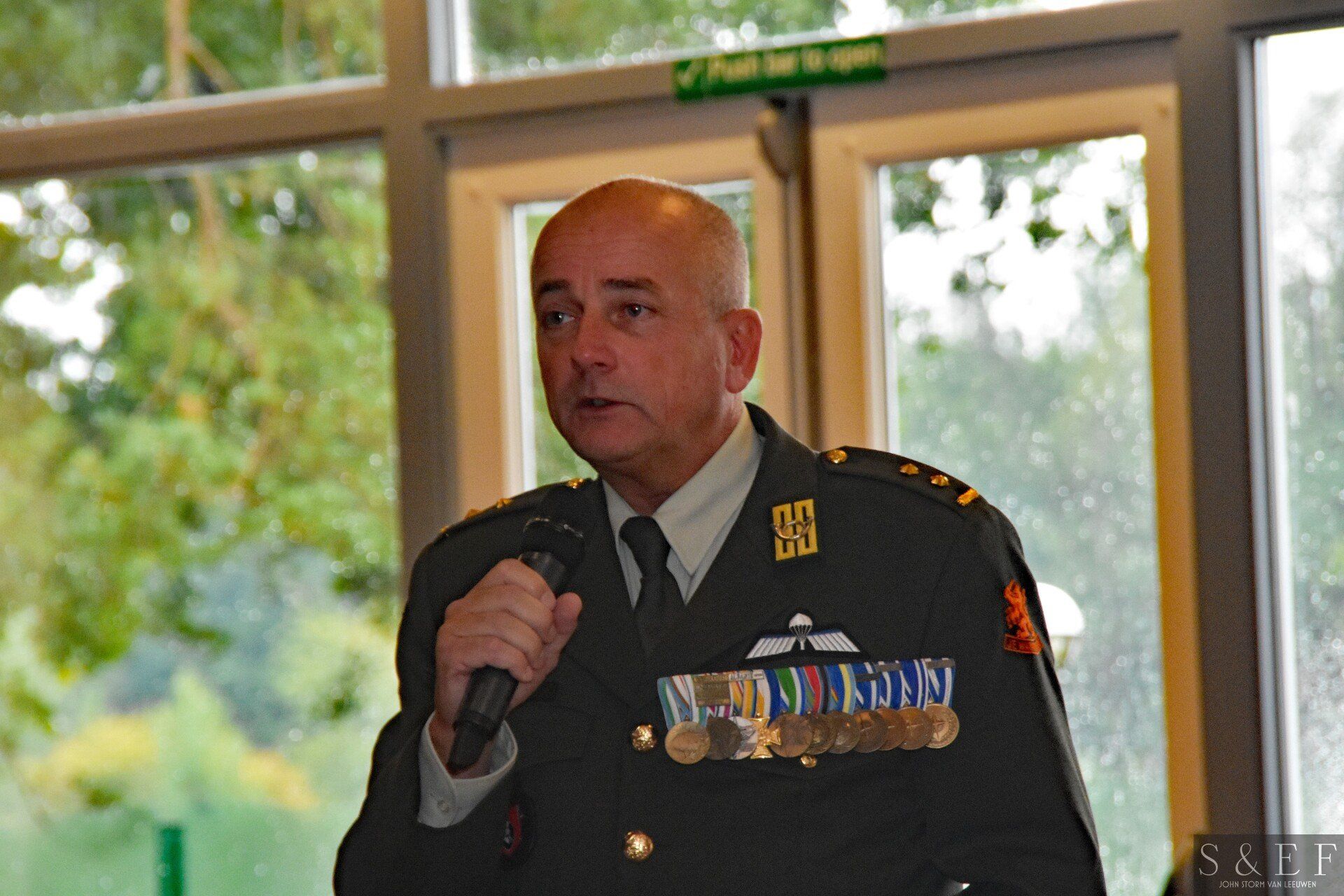 Lkol Jurriaan Wouters zal nog een korte toelichting geven op de Vereniging 18 juni, dus mocht u niet weten waar deze vereniging voor staat, dan wordt vanmiddag alles duidelijk. En u krijgt nog een korte toelichting op de draagploeg Veteranen van de brigade.