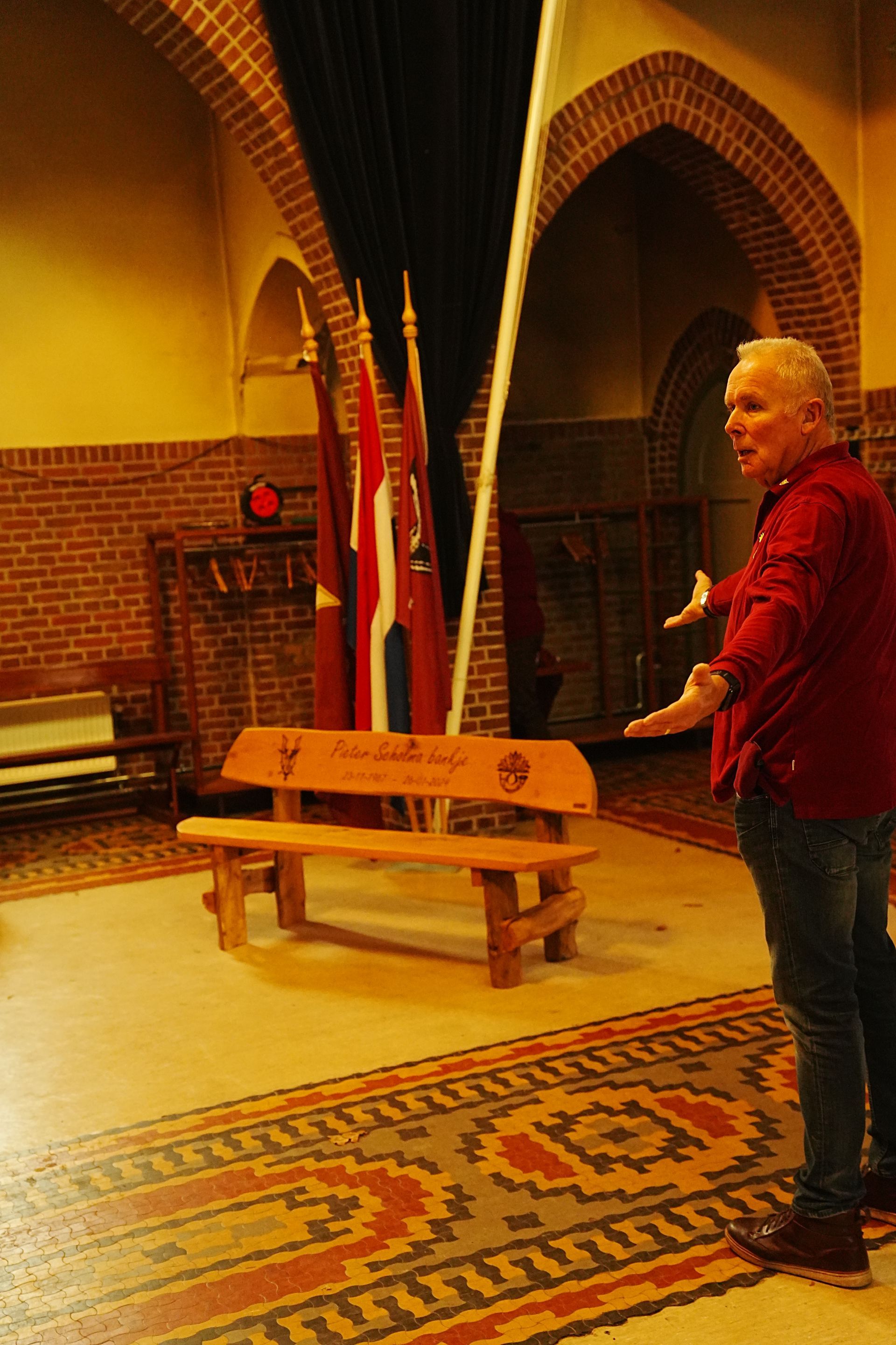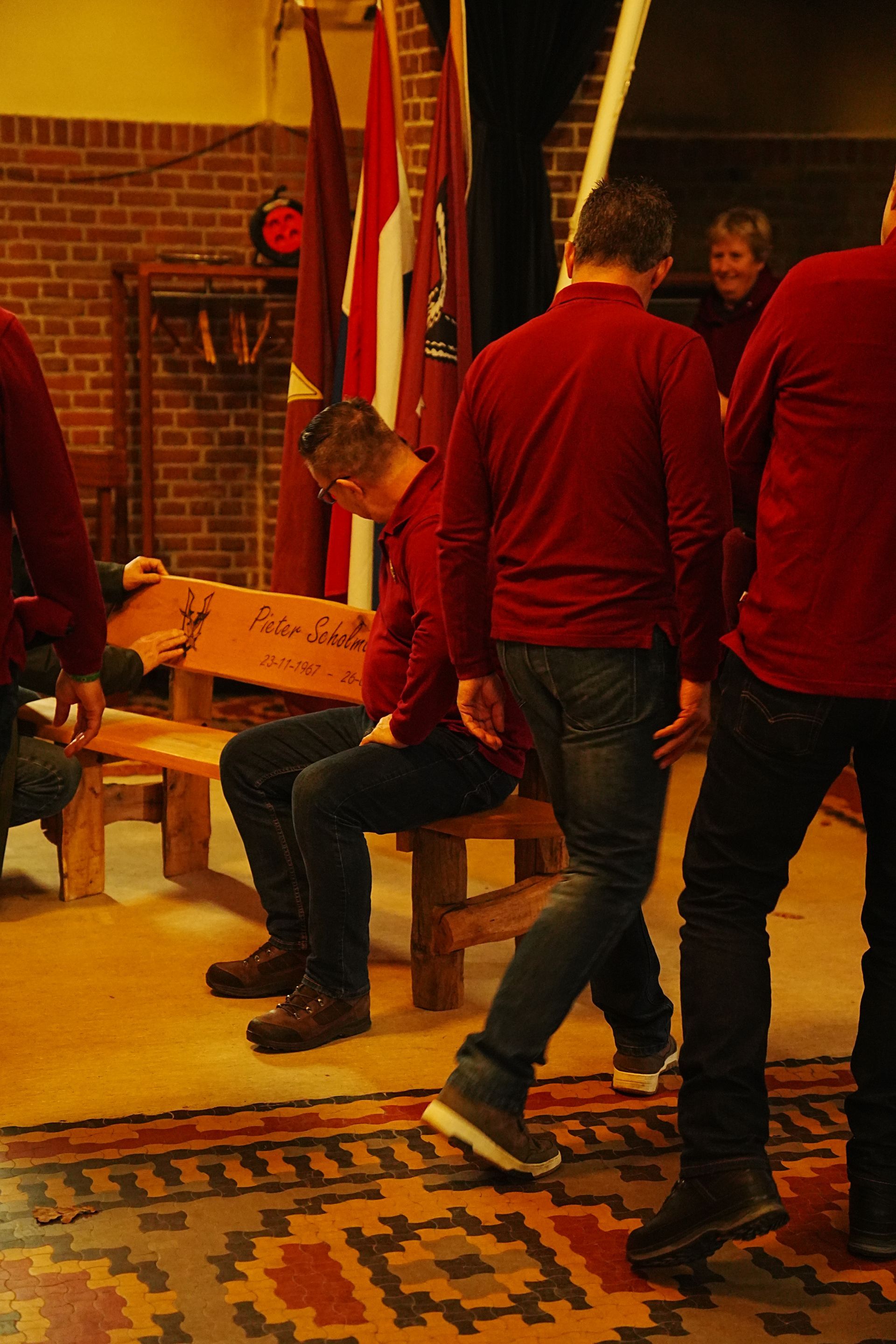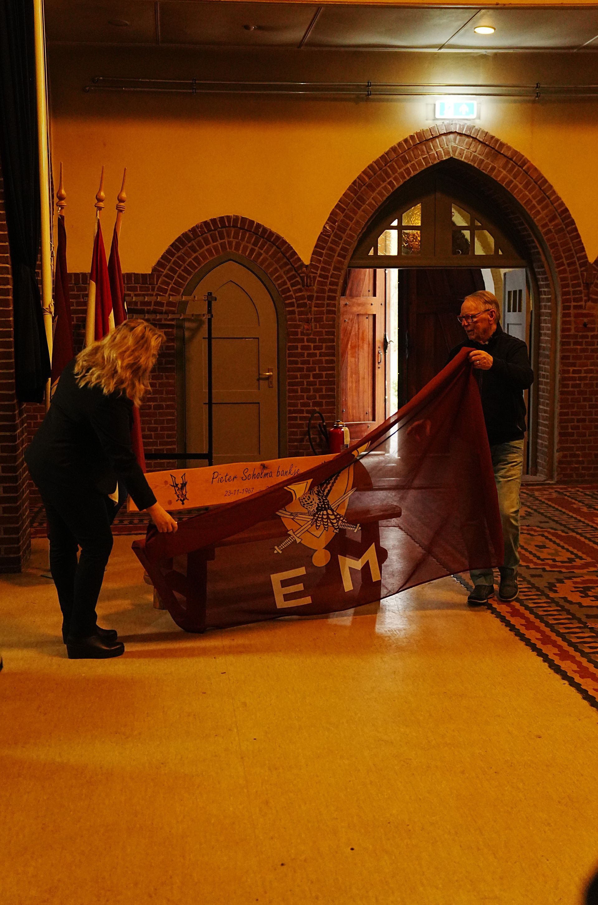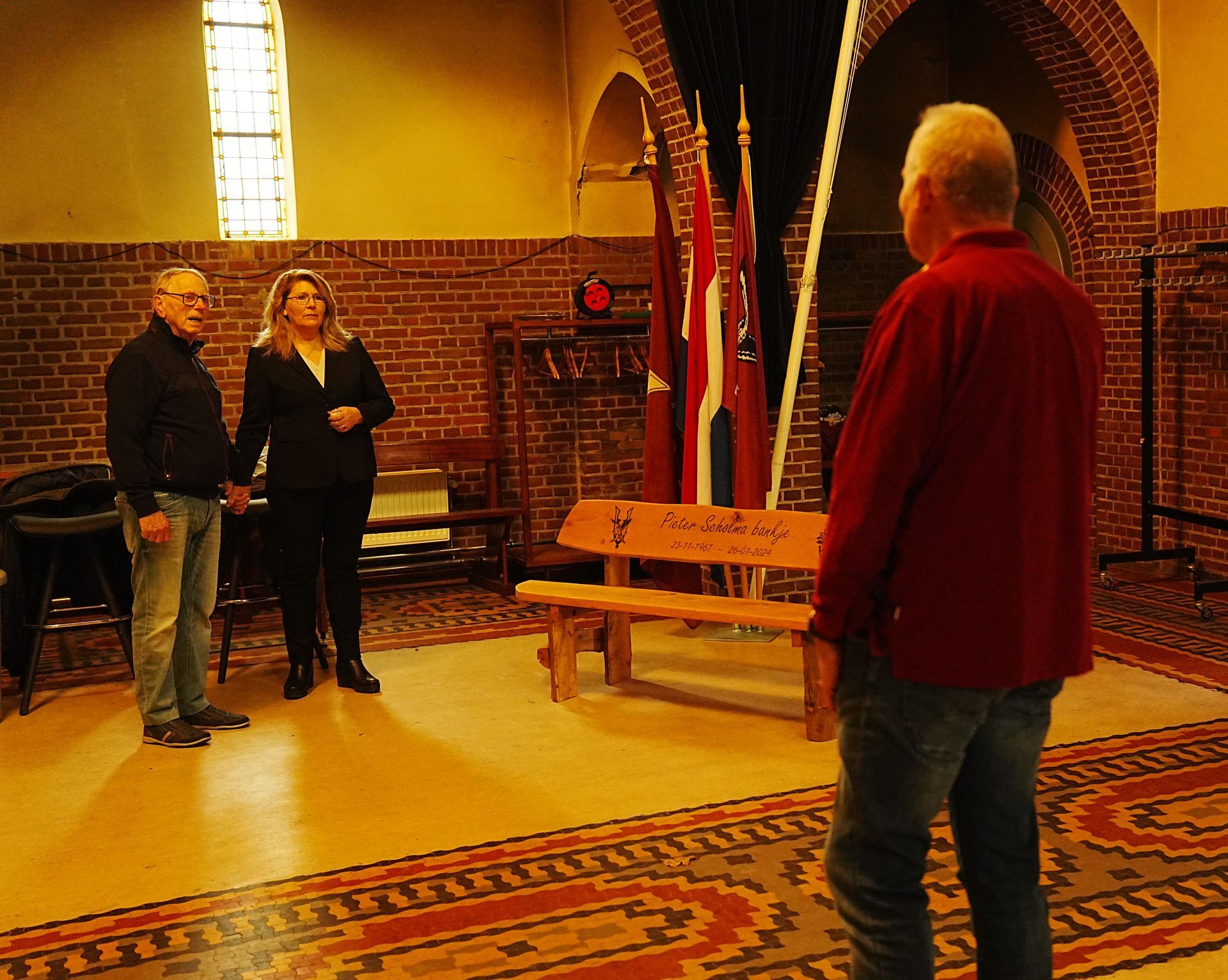 De gelden die op uitdrukkelijke wens van Pieter Scholma na zijn overlijden aan de VVGJ geschonken zijn, zijn besteed aan het zgn Pieter Scholma Bankje. In bijzijn van zijn naasten en kameraden is in de kapel het bankje officieel onthuld en is uitgebreid bij Pieter stil gestaan. Een schitterend en gedenkwaardige besteding van de bijdrage. Een plek om te zitten en te herdenken. Helaas gaat dat voor hem niet meer op, maar mocht u er een keer zitten, denk dan dat dat mogelijk is gemaakt door Pieter.