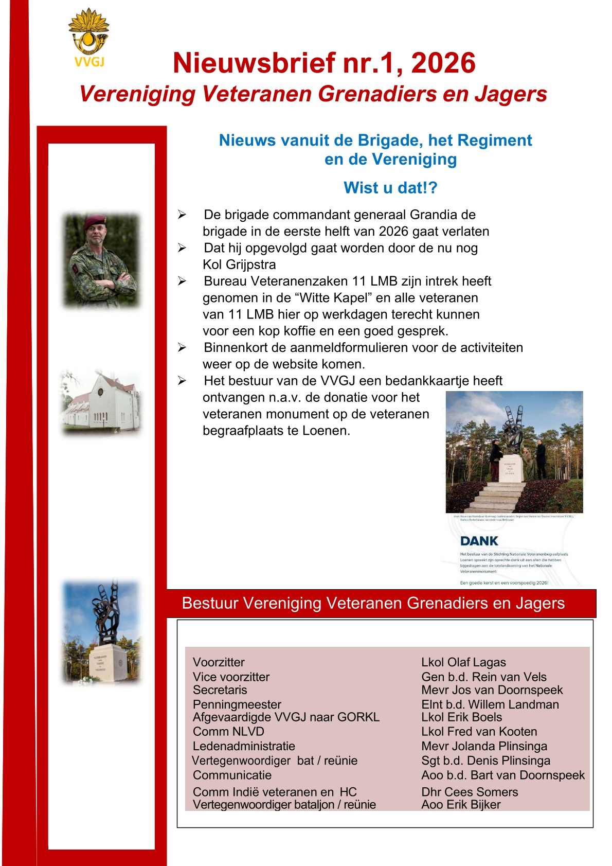 Welkom op de algemene ledenvergadering van de Vereniging Veteranen Grenadiers en Jagers.